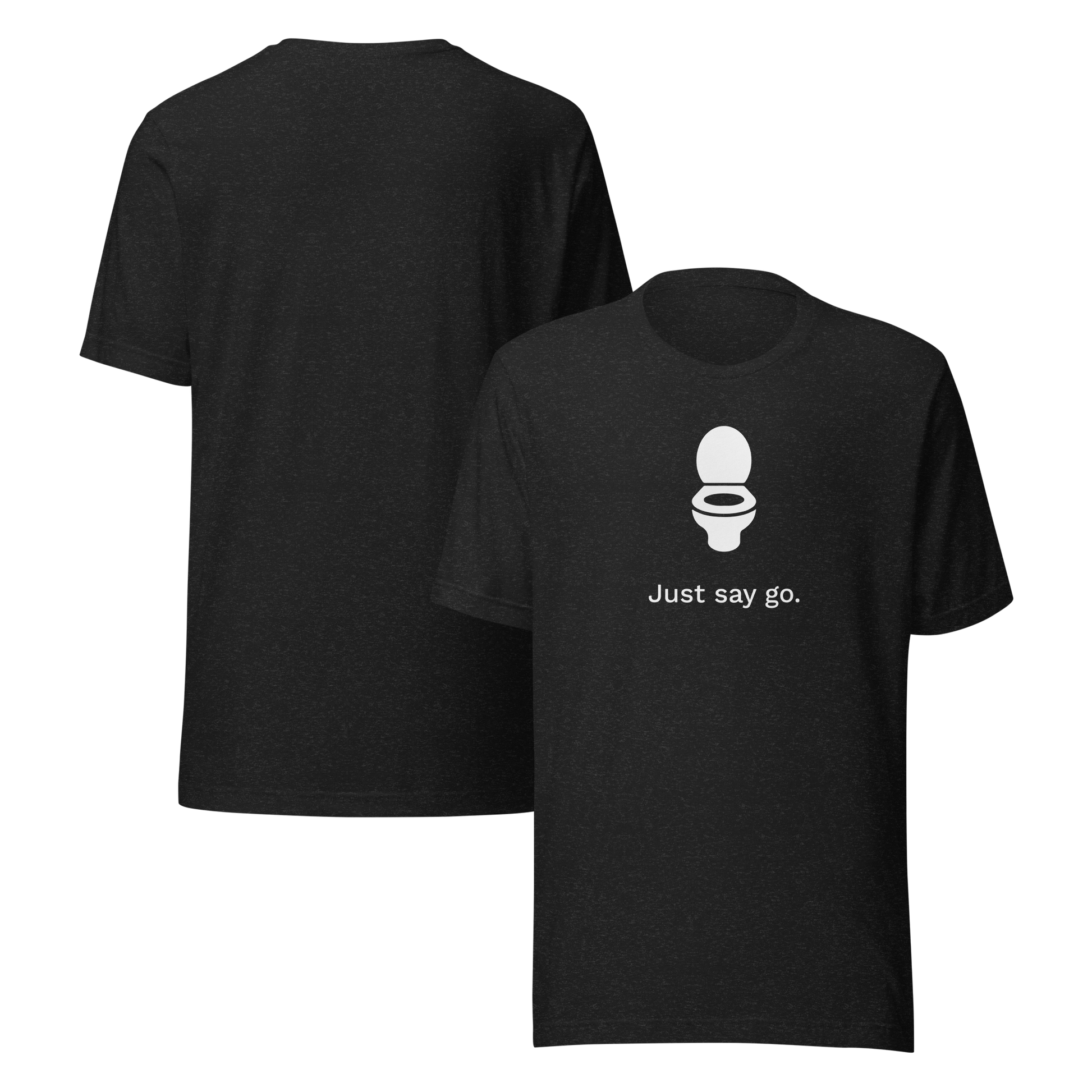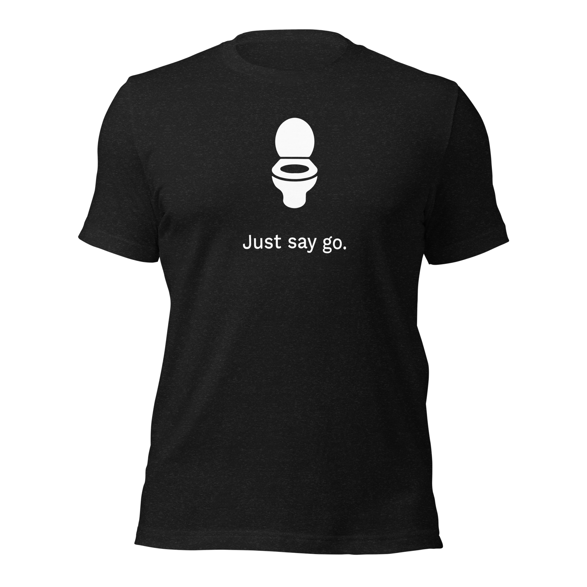 Alright, so check out this new "Just Say Go" shirt, man. It's got a playful and bold message about taking care of business in the bathroom, you know what I'm saying? This shirt is all about not holding it in and just going when nature calls. The material is soft and comfortable, perfect for everyday wear, and for those of us who dig a good pun or toilet humor, this shirt is definitely for you. It's a great gift for your friends and family too. So don't hold back, just "Just Say Go" to your bathroom needs with this rad shirt.